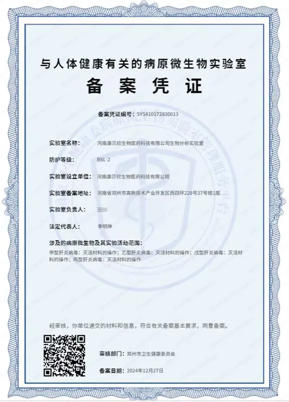 康贝欣生物医药顺利通过生物安全二级实验室(BSL-2)备案